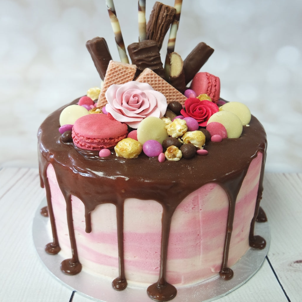 Valentines Pink & Pretty Rose Drip Cake
